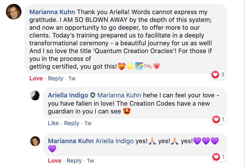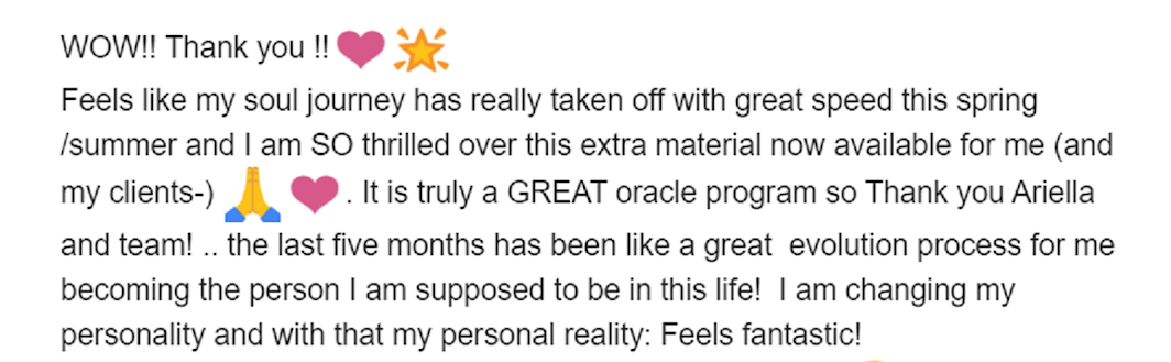The training includes 4 pre-recorded online modules with me, plus 6 LIVE Q&A calls with my incredible Head Oracles, to help guide you through the process. All the content will also be added into a platform so you can access the recordings FOREVER, and once you qualify as a Certified Oracle you’ll get access to a special Bonus training and invited to join our monthly Q&A calls for ongoing support as you step into your role as an Ascension Wayshower for the New Paradigm on Earth.