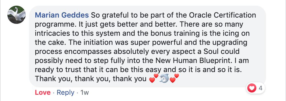 On completion of of the training, you will be fully equipped to give professional Soul Purpose readings to clients. The programme will assist you to activate your own intuitive channel so that you can gain clear higher guidance for both yourself and others. You will also be trained on how to attract clients and create a business so that you can earn money as an Oracle giving spiritual guidance to others on their Ascension journeys. When you complete the training and gain your certification, you’ll also get access to a special Bonus training that will teach you how to restore and upgrade your client’s Blueprints to the New Human Blueprint and be part of this crucial Evolution in humanity’s history.